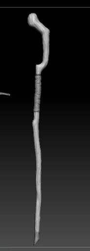 The last item now was a weapon. since my character is peaceful had planned to give it a simple staff. I used the Zspere to construct the lockout and added wood details using the pinch tool. I also added a warping around the staff to match the clothing style of the character.